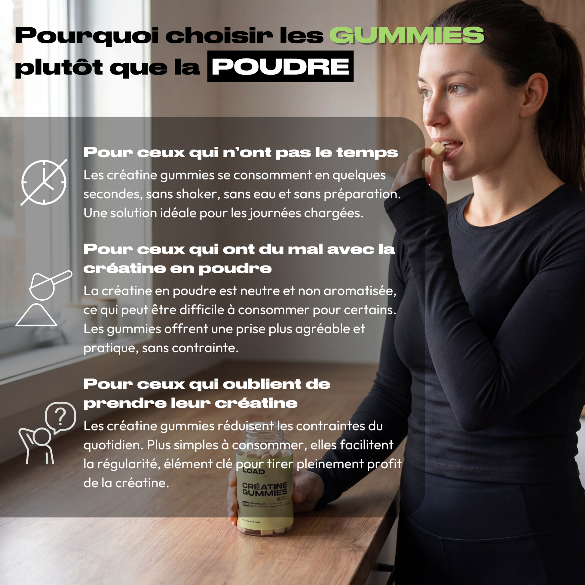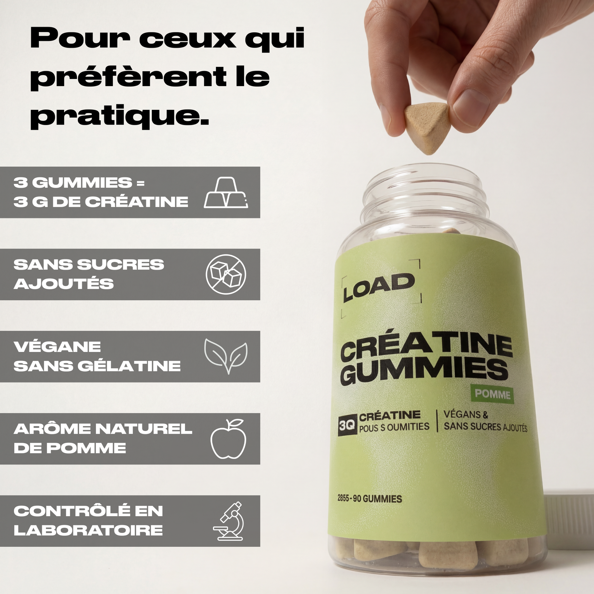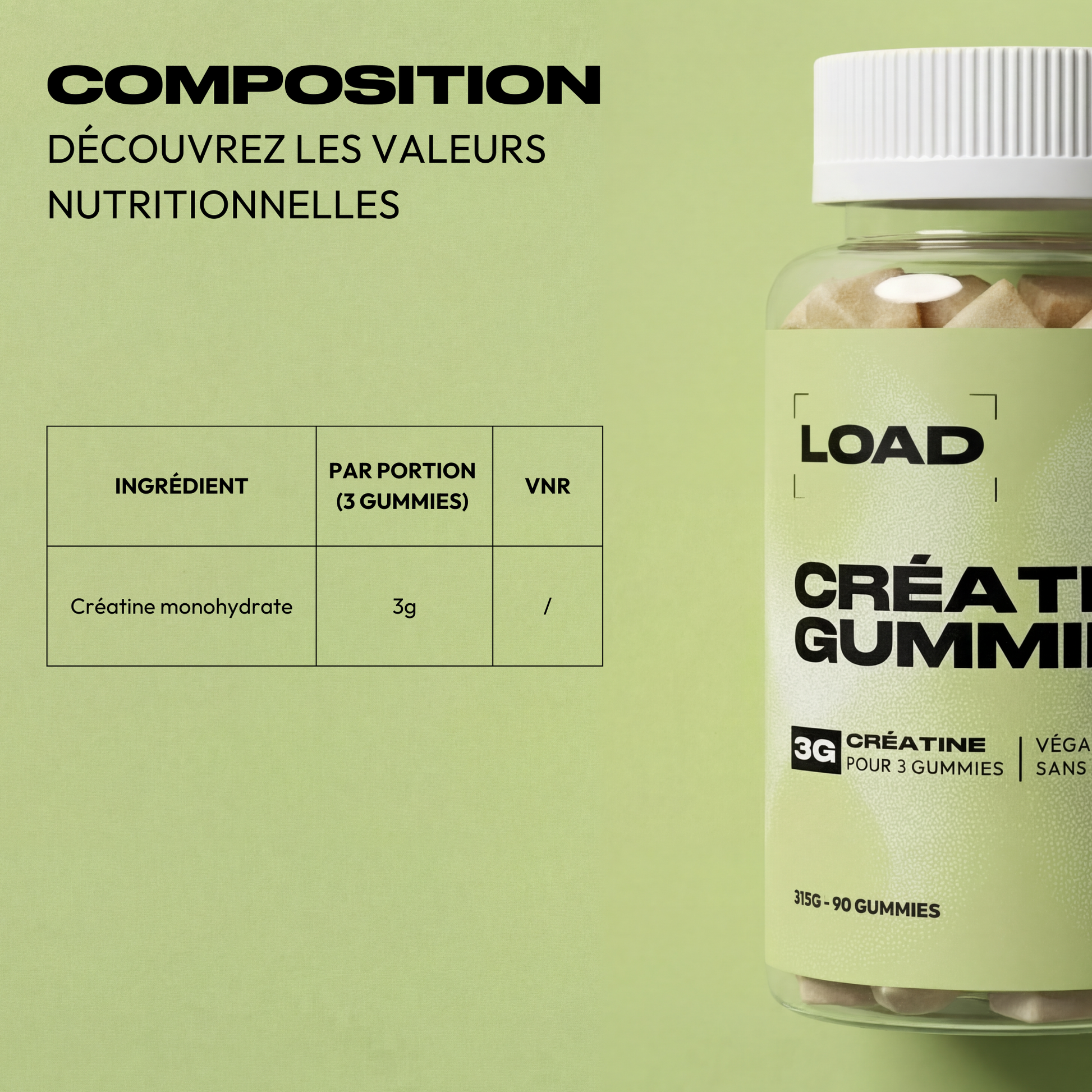 → 3 gummies = 3 g de créatine