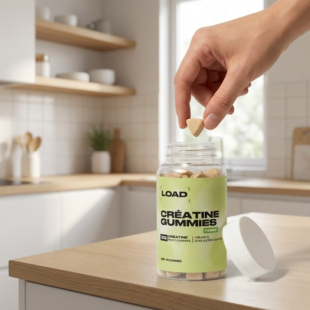 La créatine en poudre est neutre et non aromatisée, ce qui peut être difficile à consommer pour certains. Les gummies offrent une prise plus agréable et pratique, sans contrainte.